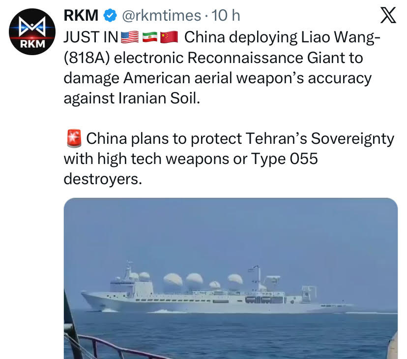 Then we probably need to see what we are not seeing right now – Russia usually moves under the noise of other things, and China should be under pressure – if Xi removes the entire top military leadership, it is a sign, and China has flown in a lot of material to Iran in recent weeks.