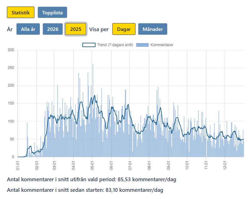 Now there is a page for those who want to delve into how the number of comments has evolved on the blog over time.
