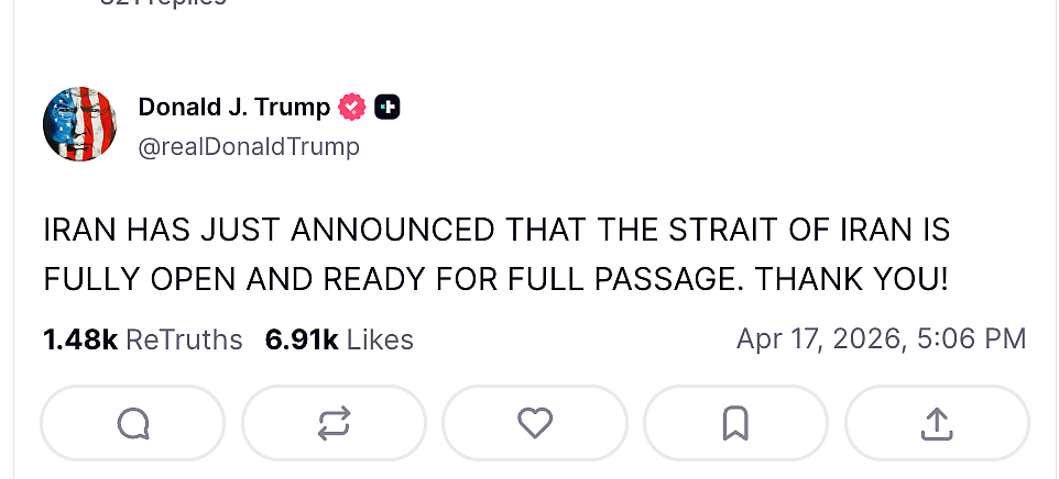 And Trump can also take credit for the US having negotiated the ceasefire and subsequently the opening of the strait.