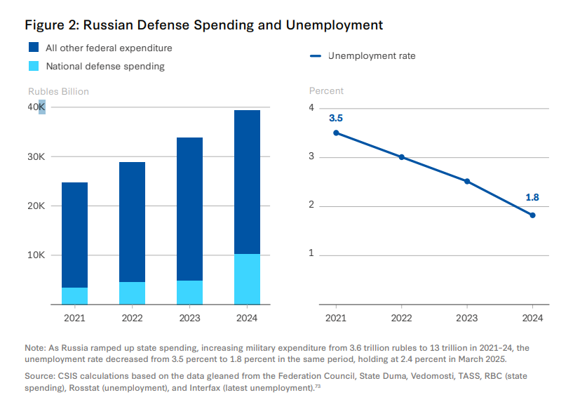 And remember: russia is running its economy on war spending — defense outlays at 6%+ of GDP — the highest since the Cold War.