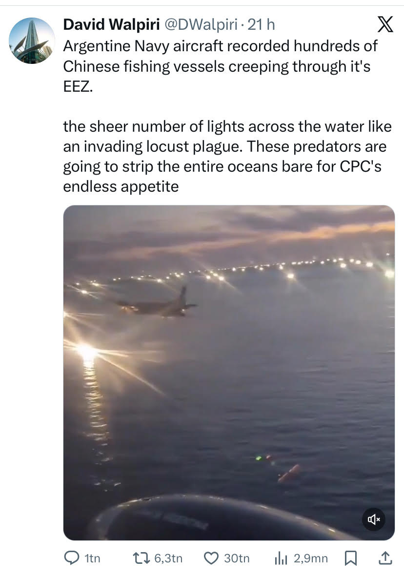 Here, hundreds of ships are in and around Argentina’s coast, vacuuming up products without the right to do so, and a fleet of thousands of ships and the very definition of a marine locust swarm.