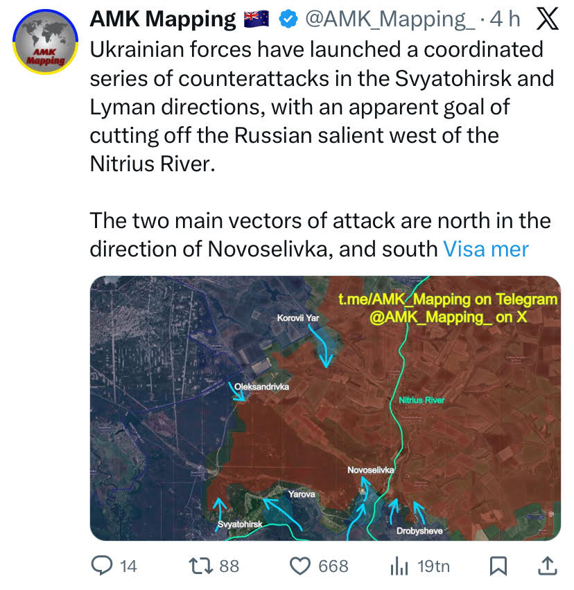 At the fronts, I now use Project Owl instead of Deepstatemap as they are more accurate in times of UA counterattacks.
