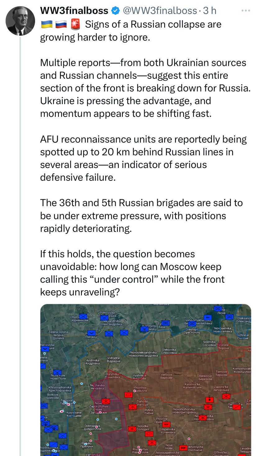We also have an ongoing Ukrainian counteroffensive that has been devastating in two front sections and stabilizing in Pokrovsk.