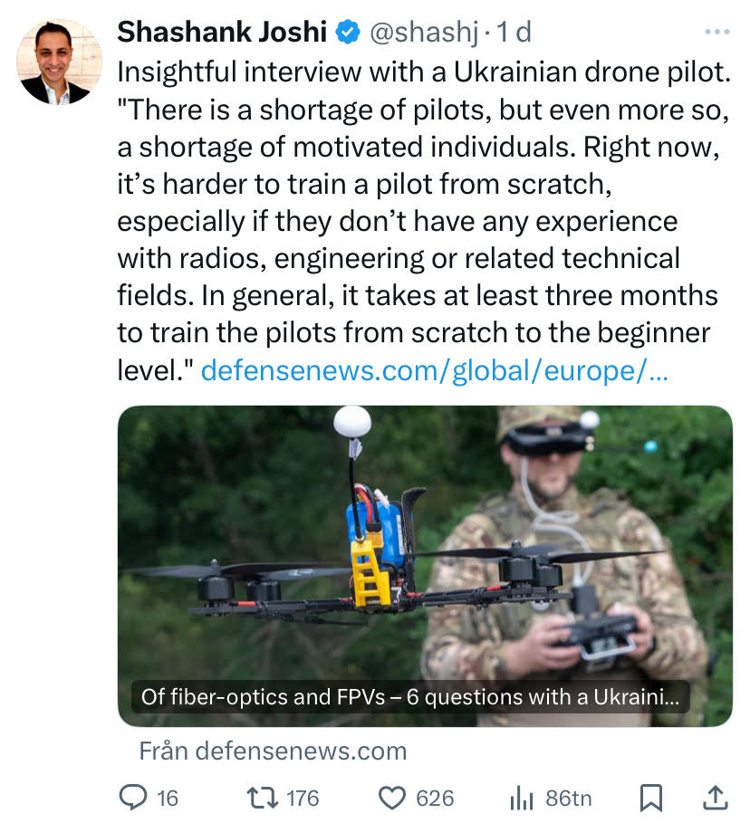 -the situation in Pokrovsk and Kupiansk was and is very tense, and in Pokrovsk, Ukraine conducted an airborne landing with its most valuable units. These are units that you prefer not to expose, but now they did it in a drone-saturated battle in the village, which is probably the biggest trap that can be encountered in a war, Lex Stalingrad.