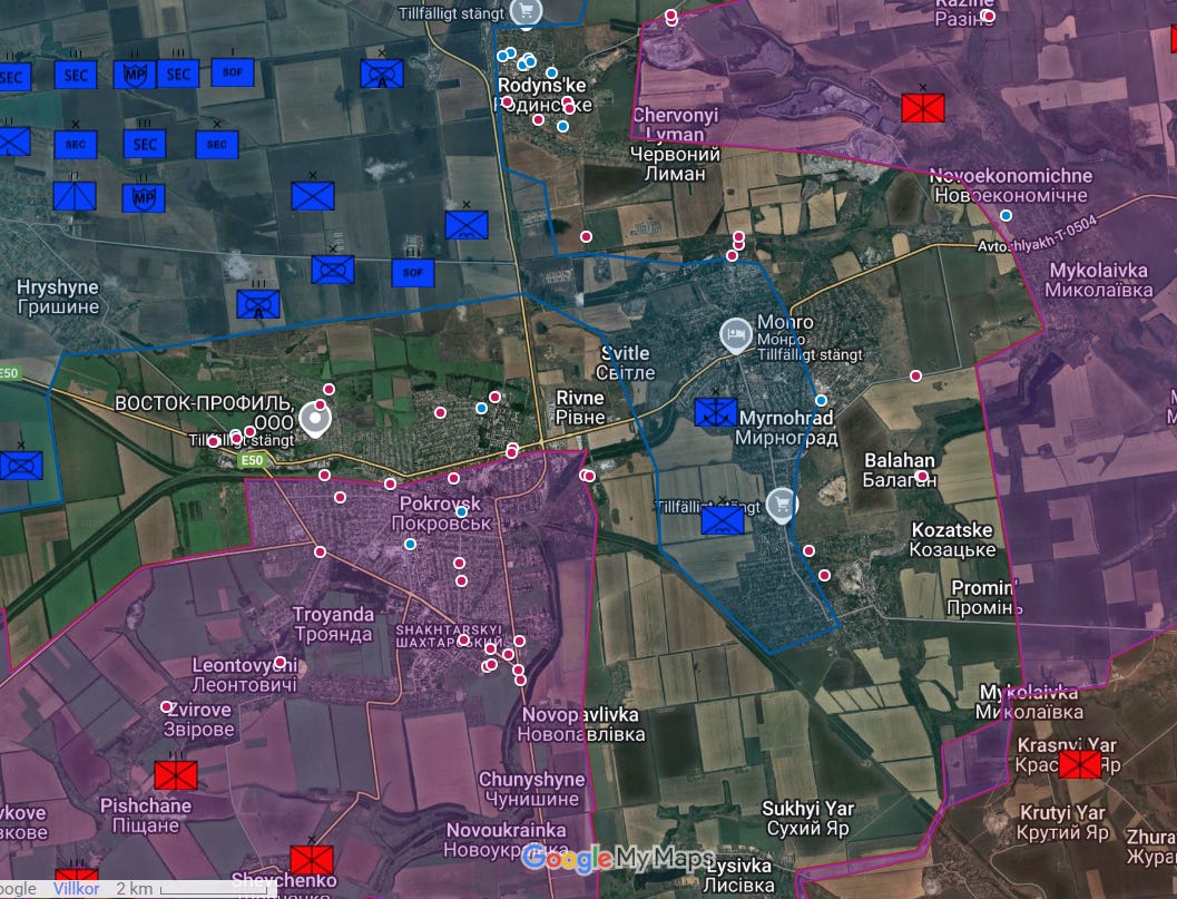 It seems clear that RU has gained a foothold in all the settlements from Pokrovsk, Myrnohrad down to Kozatske, right?