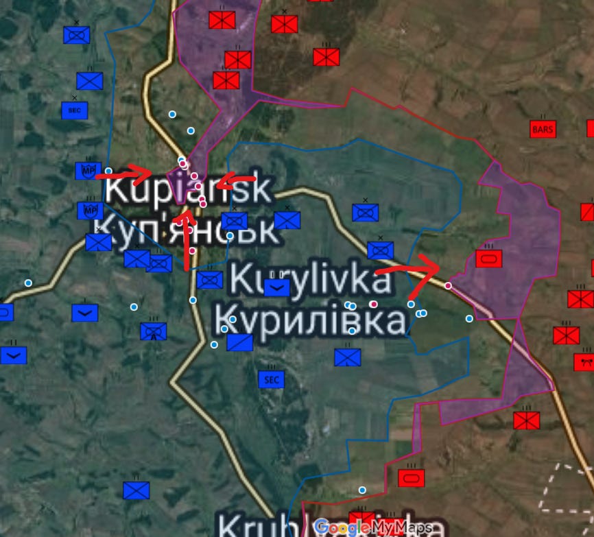 I have flown past films from GUR, Rangers, Azov, and others who are currently in combat, and up in Kupiansk, UA has carried out counterattacks and cleared up the city just like in the thinning at Pokrovsk.
