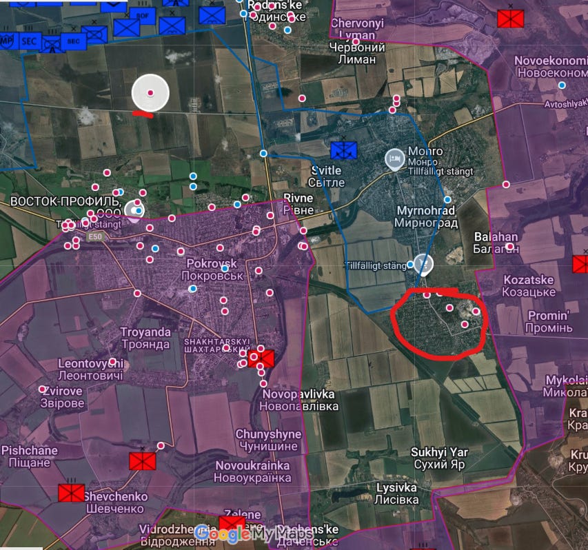 In his defense, he has never mentioned Kozatzke, but it is difficult to see that the settlement in Pokrovsk would not be controlled by the Russians at the time of this post?