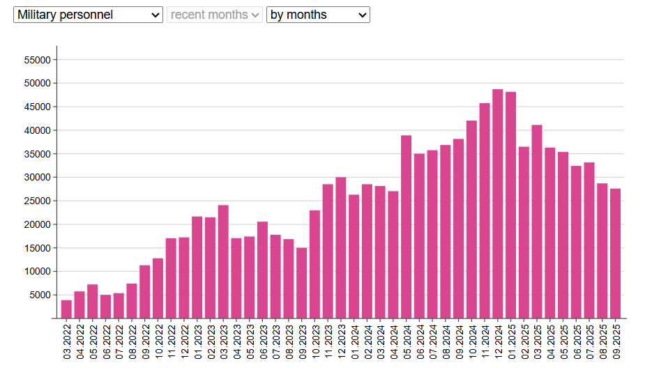 The average ratio has varied but has never been this low. In the fall of 2023 when Russia launched its offensive, it ranged from 1:2.4 to 1:4.7 (30-day average, not individual days) and there have been periods where we were at 1:6 – 1:10.