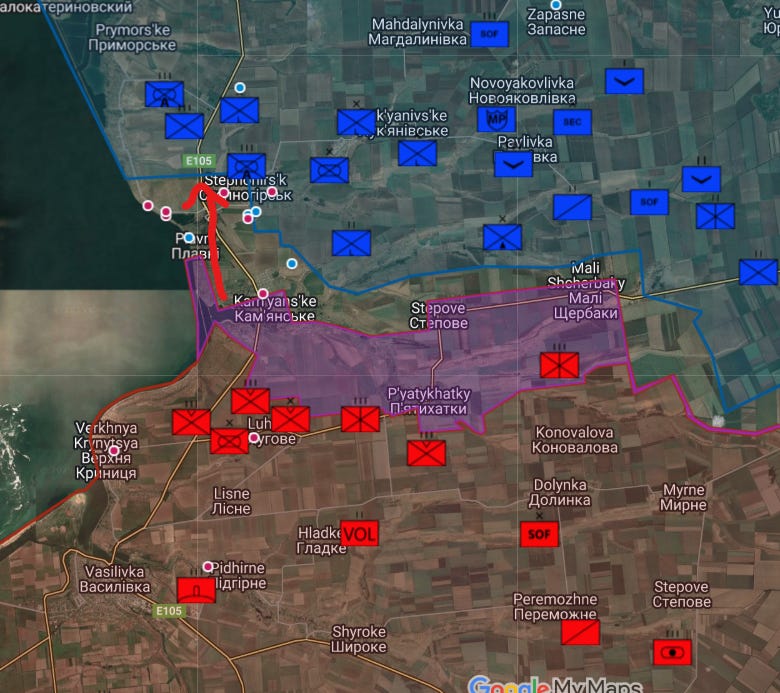 But it’s rather pointless because the offensive at the Southern front is already beyond that line – RU will not stop at their stated attack goals.