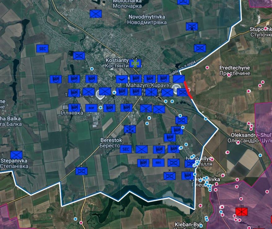 At Kostianytivka, RU is approaching and sniffing around the city with the first sabotage groups inside the city. It was supposed to have a ring of very well-prepared defenses and be practically impregnable.