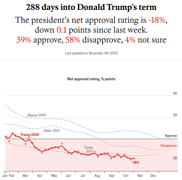 The Economist graph looks a bit peculiar. Trump is dropping by 0.1 percent and remains at -18%, although in the graph it appears as if he has increased slightly even though it was -18% last time as well.