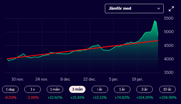 När jag satt och scrollade kom det upp ”dumpning i Bitcoin” och sen när man var inne på DI så gick börserna ned också – alla tillgångsslag gick ned.