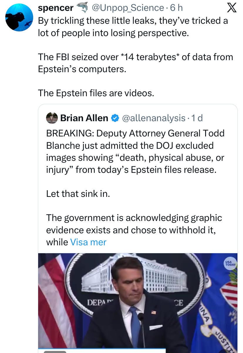 Nu kom så till sist det andra stora Epstein-släppet, runt hälften och massa överstruket igen men någon gjorde (igen) ett misstag så en stor grupp filer kom först upp på sidan och togs sen bort efter att massa twittrare lyckats spara ned dom.