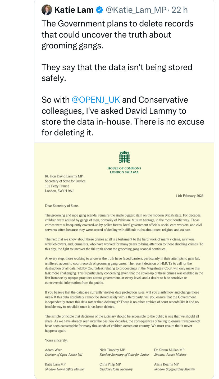 Och till sist så går parallellt med detta en parlamentarisk diskussion om groomingskandalerna i UK, förvisso från Reform men bättre än ingenting.