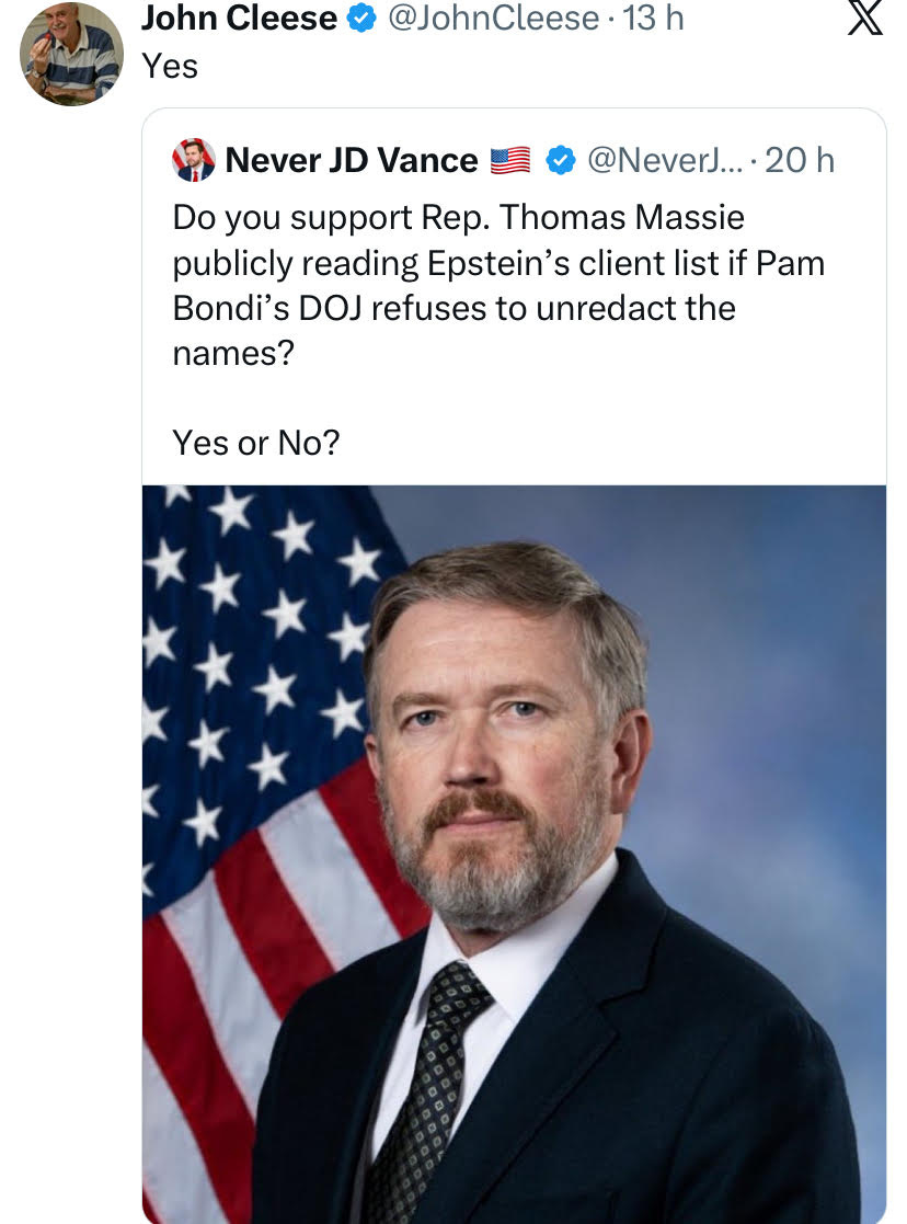 Men jo, viss risk att det är en nothingburger för de första sex namnen var ej amerikanska – man provar att offra några bondepjäser först och se om den blodtörstiga pöbeln ger sig. Vi får helt enkelt se men Massie verkar vara the real deal iallafall och definitivt den person man vill se fronta detta.