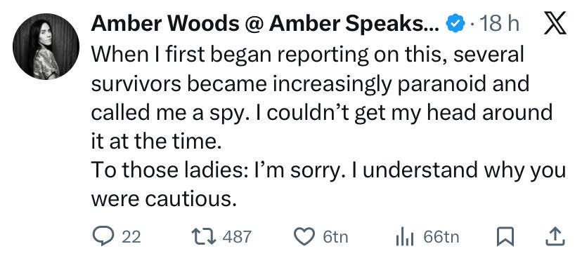 2. vad händer med de som pratar, de journalister som rapporterat och offren själva. Här gäller väl regeln att om man dör inom 1-2år efter att man luftat det hemska då kan man misstänka att allt inte står rätt till.