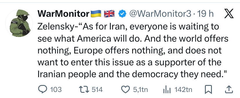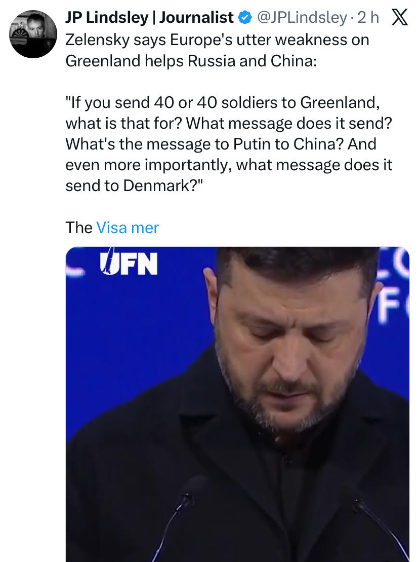 Vill klargöra att vilken väg Ukraina än väljer är det bra för dom – dom har inget ansvar i någonting och har tagit en stor för laget under 4 långa år. Det blytunga ansvaret vilar i europas knä och det kommer bli en fin dissonans när Trump måste hyllas för freden i Ukraina för att Europa helt enkelt var oförmögna – vi var sämre än Trump hur fan det nu är fysiskt möjligt.