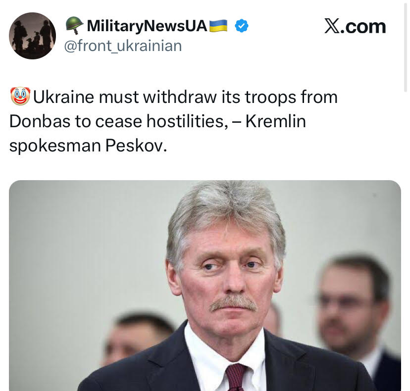 Hursomhelst – ett eldupphör är sämsta möjliga utfall och jag hoppas innerligt att Europa stöttar Ukraina i detta så dom inte går med på det för då ger vi Putin något han inte förtjänar OCH han kan eskalera mot oss.