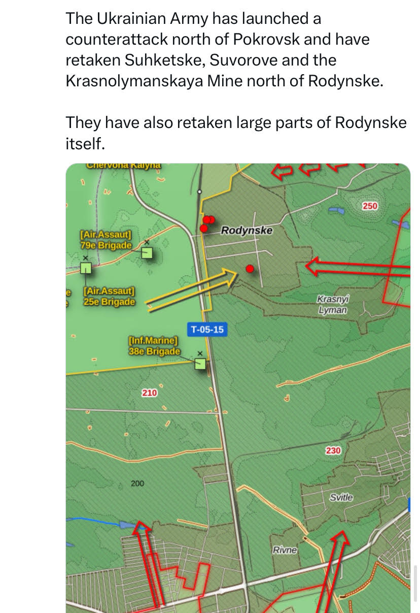Det ser ut som att Ukraina håller på och strider om Pokrovsk fortfarande – dom befriade Rodynske.