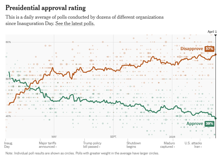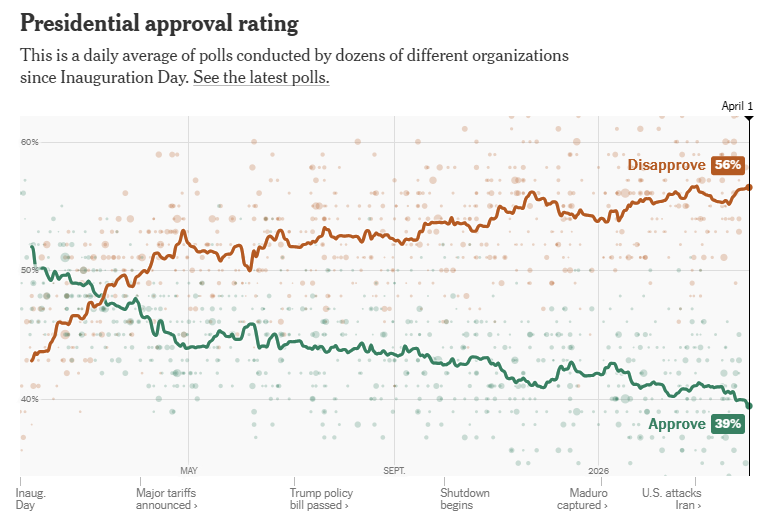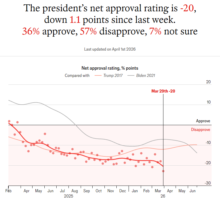 The Economist redovisar nu det lägsta stödet hittills för Trump med -20%.