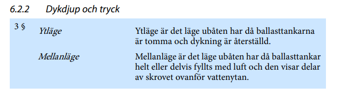 Definitionen av mellanläge som U137 färdades i – det är alltså inte fullt ytläge utan att en bit av ubåten syns över ytan. Får då påpekas att fridjup/fribord blir djupare än vid ytläge.