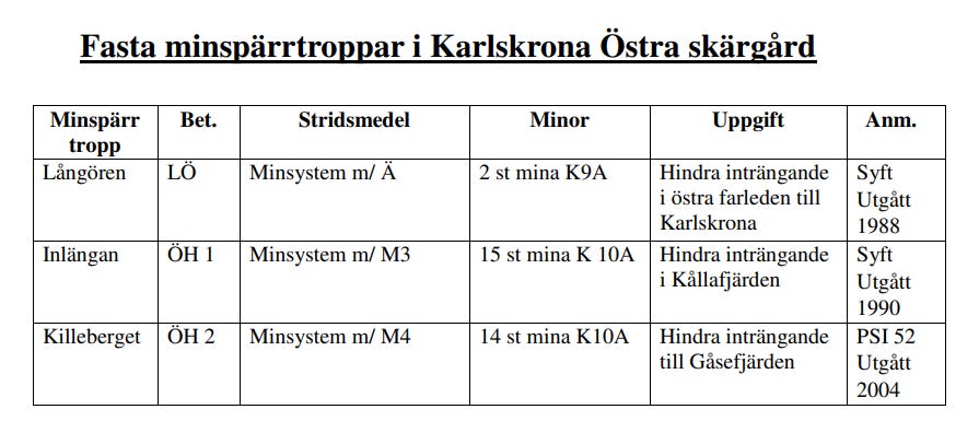 Gåsefjärden var krigsförtöjningsplats för flottan med en minspärr och en postering (eftersom batteriet vid Tjurkö var obemannat gissar jag att posteringen också var obemannad).