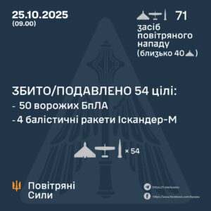 Nattens ryska terrorbombningar inriktade sig bl.a. på Kyiv med fler döda och skadade och man träffade även infrastruktur för värme. Attackerna orsakade även stora bränder. Totalt attackerade ryssarna med 71 Shaheds och robotar varav 54 sköts ner, vilket motsvarar 76%.