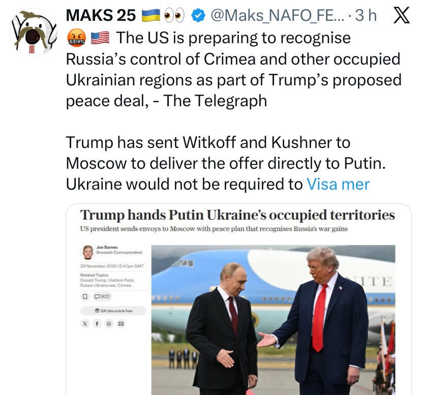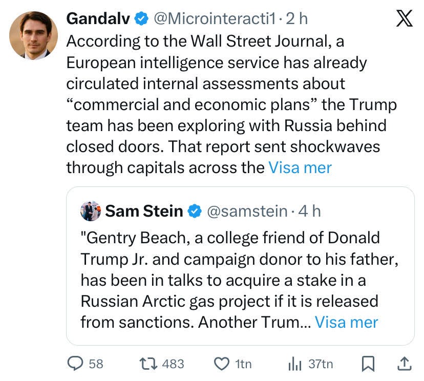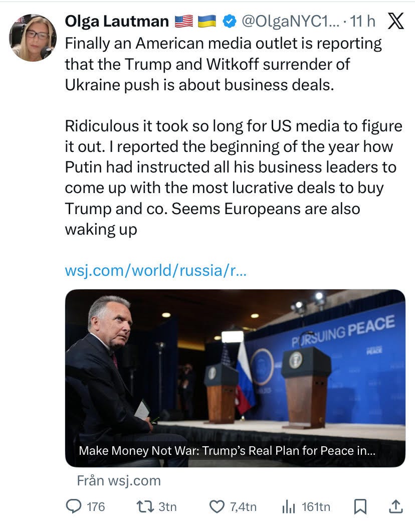 Moteld är definitivt anlagd inte minst det läckta samtalet och hand upp den som sett Trump/USA agera på Witkoffs förräderi?