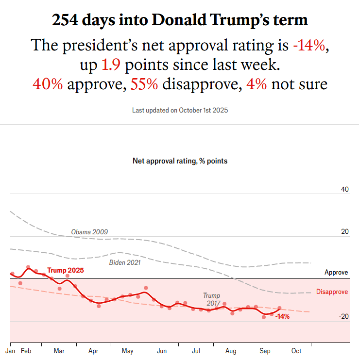 Upp 1,9 sedan sist vilket ger -14% så nu är han tillbaka till förra presidentperiodens nivå igen.