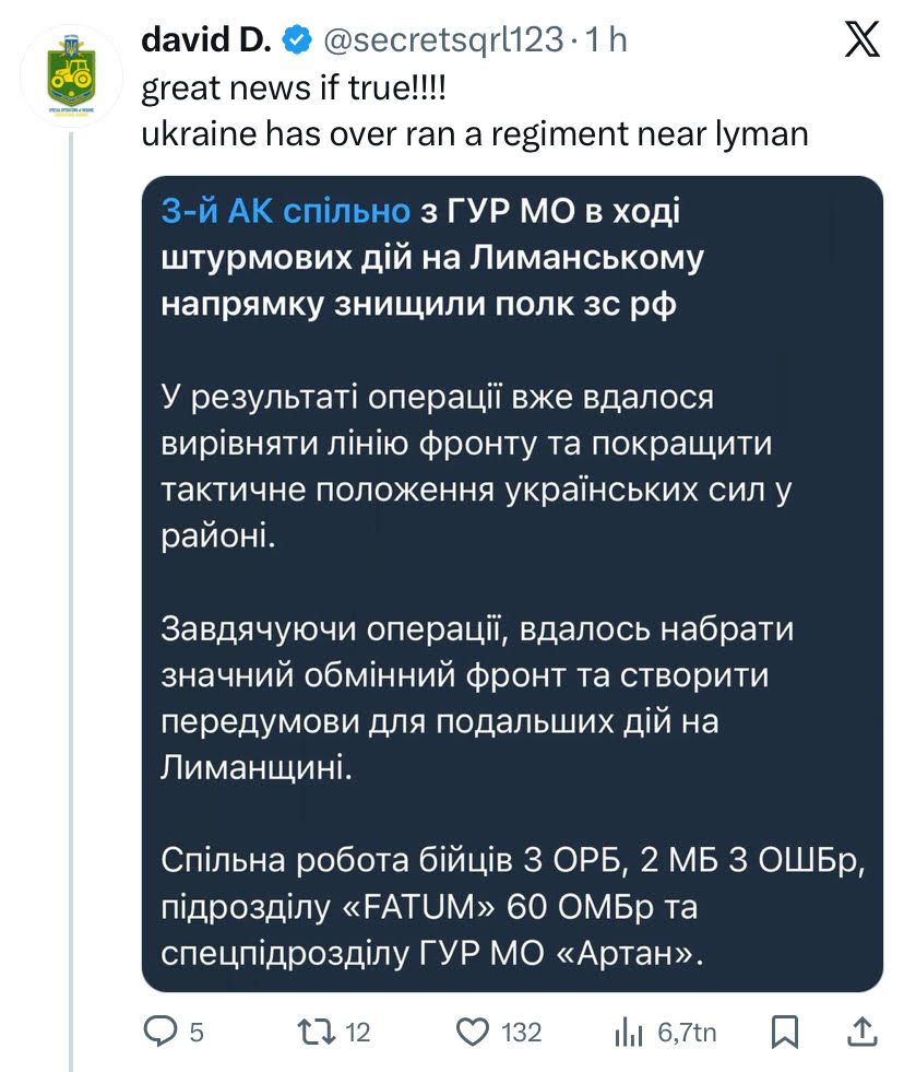 En mycket god nyhet – Azov har nollat ett ryskt regemente borta vid Lyman också.