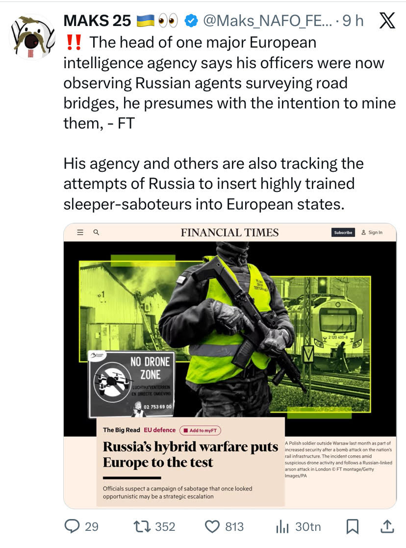 Nu säger både UK och Tyskland öppet att RU roar sig med krigsförberedande sabotage och rekognocering som åsyftar att fördröja vårt svar.