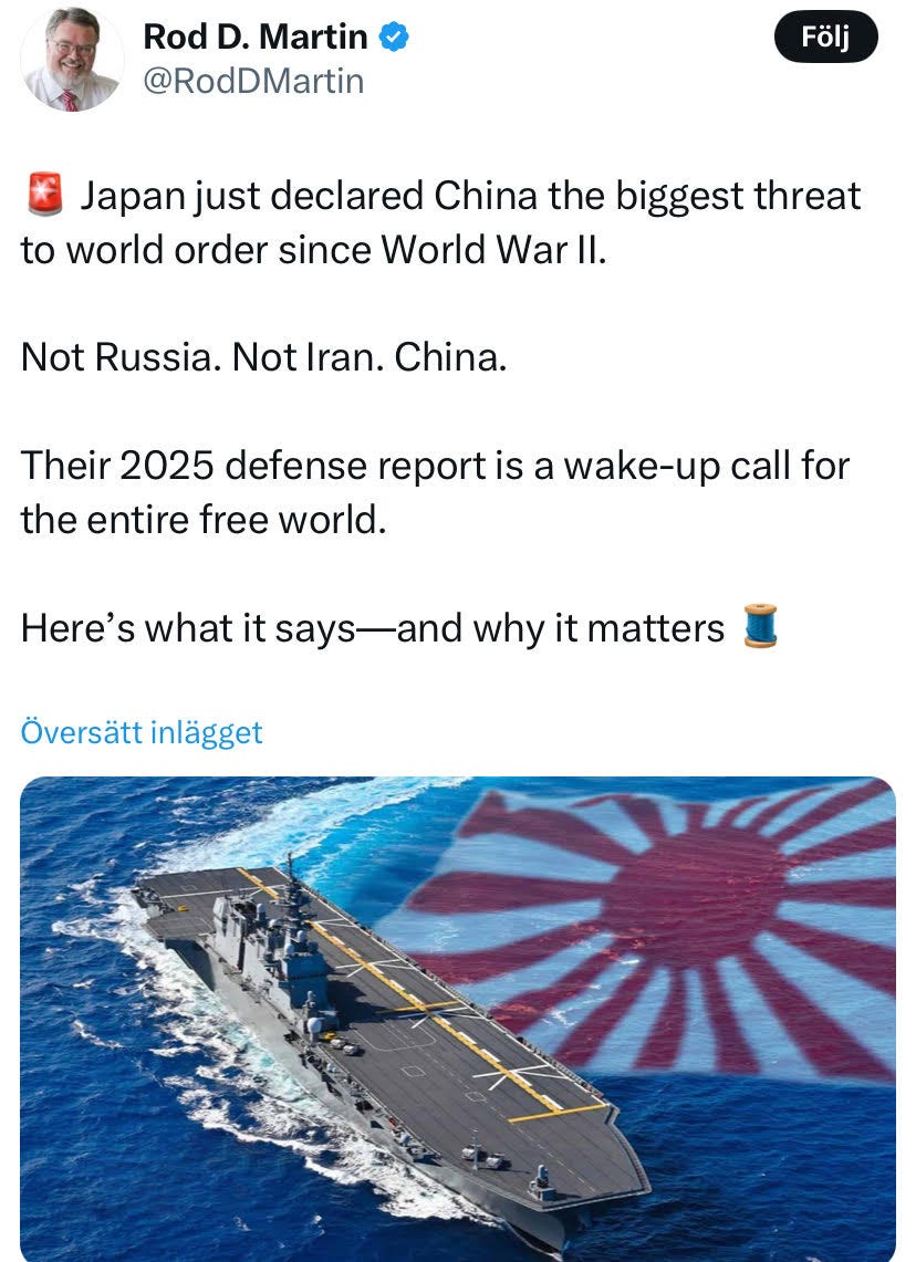 Japan har ju officiellt utnämnt Kina till det största hotet sedan dom själva drog igång Pearl Harbour iallafall 😀