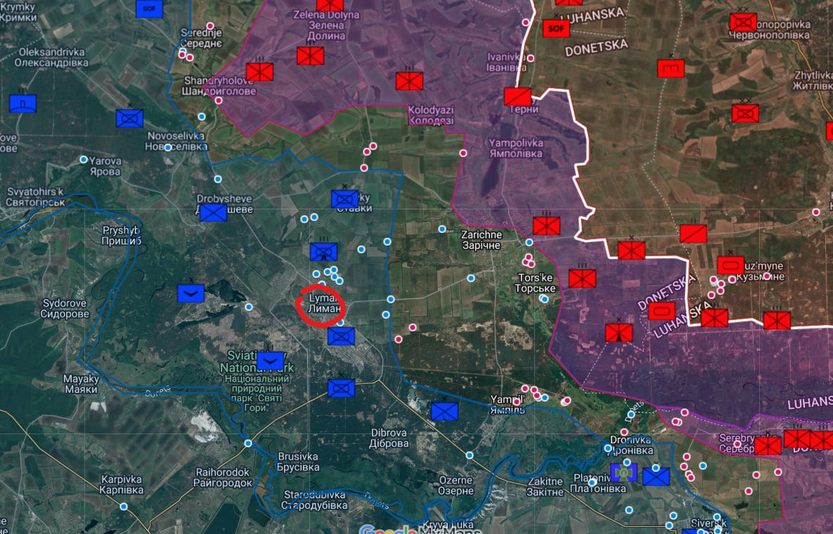 I Liman-riktningen attackerade 🇷🇺AFRF nio gånger och försökte bryta igenom 🇺🇦AFUs försvar nära Shandryholove, Novovodyane, Zarichne och i riktning mot byn Koroviy Yar.