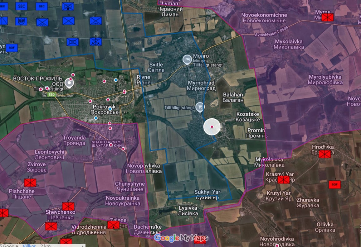 I Pokrovsk ser det ut som nedan vilket kanske föreslår att man håller på att dra sig ur det hotade området.