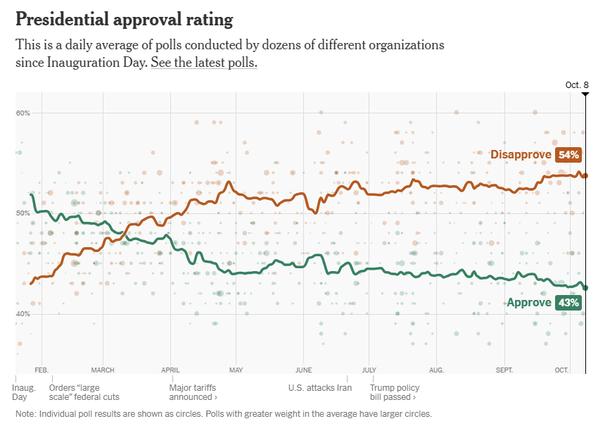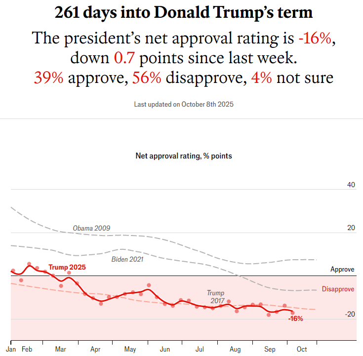 Enligt The New York Times ligger han på -13% så där har det inte hänt så mycket.